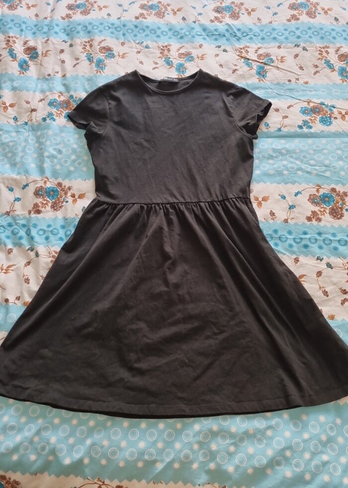 urun bedeni m dir ama 10 12 yaş arası çocuğa daha uygundur, ben kızım için aldım 1 kere giydi çıkardı bir daha giyilmedi tertemiz, rengi tam siyahtir