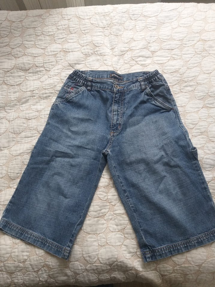 mavi tonlarında, bol kesim erkek denim cocuk şort. Düz desensiz, rahat ve gündelik şıklık sunar.