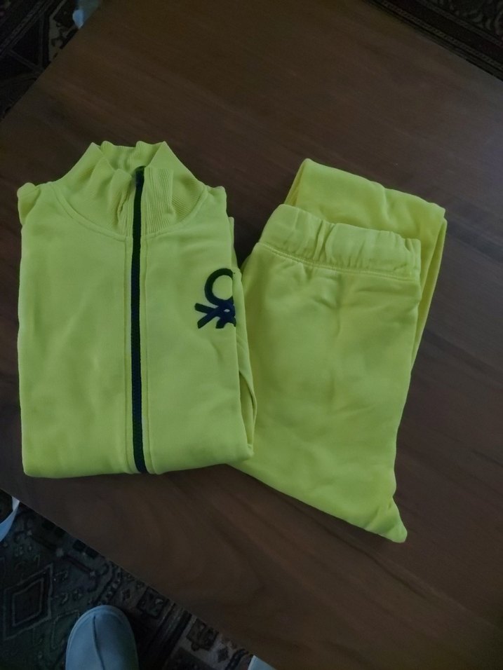 Sarı renkli, fermuarlı eşofman takımı, yumuşak ve sıcak kumaştan, trend sokak giyimine uygun,temiz kullanılmış