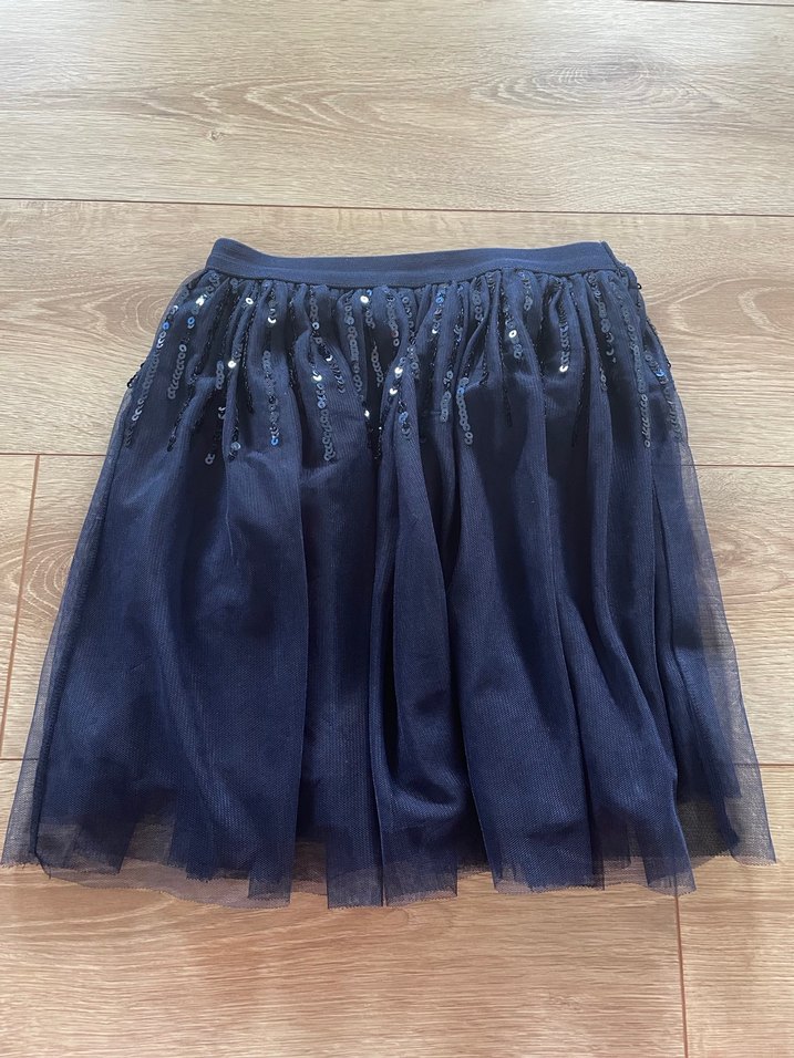 Lcw çocuk etek, 8-9 yaş, lacivert tütülü üst kısmı pullu.