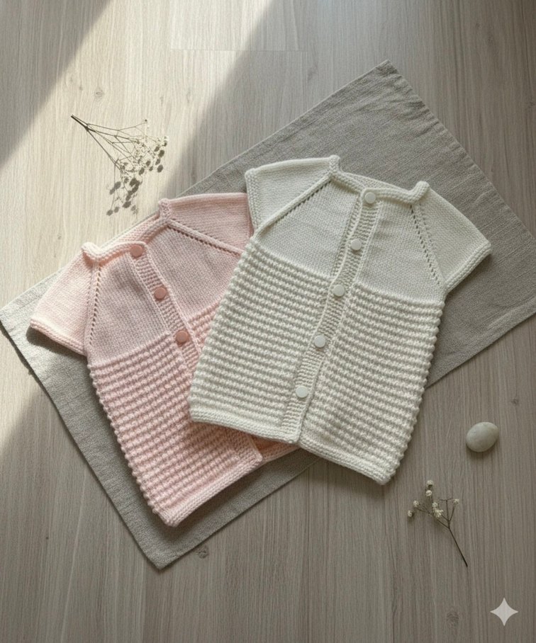 Çocuklar için kolsuz beyaz hırka, fit kesim ve modern klasik tarzda örülmüştür. Yumuşak dokulu ve desensizdir. Katmanlama için uygundur. İstediğiniz renkte örülür.
