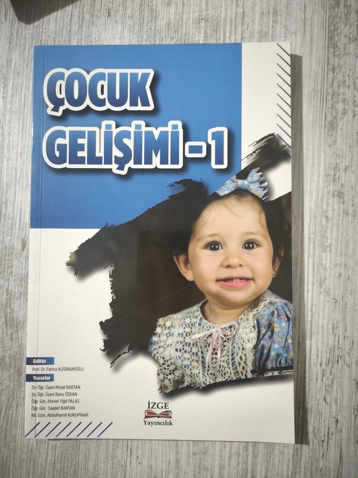 Çocuk Gelişimi-1 kitabı, çocuk gelişimi konusunu işler. Kapakta gülen bir çocuk resmi vardır. İzge Yayıncılık tarafından yayımlanmıştır.