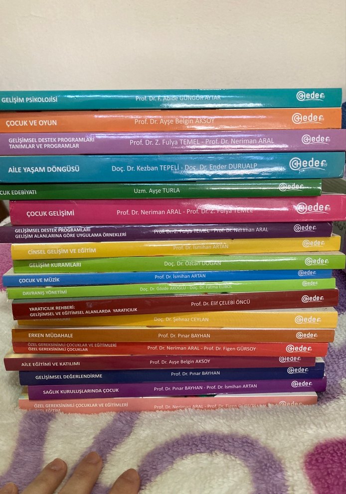 Çocuk gelişimi, eğitim, psikoloji ve aile yaşam döngüsü konularını içeren sınav hazırlık kitapları seti.