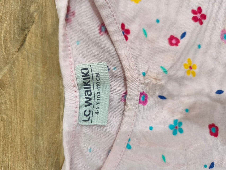 Kız çocukları için bol kesim, kısa kollu ve yuvarlak yakalı tişört. 4 5 yaş kusuru yoktur