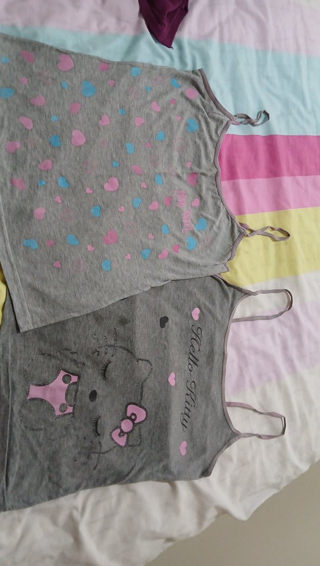 İnce askılı, renkli kalp ve karakter desenli iki gri çocuk atleti. Rahat ve hafif kumaştan yapılmıştır.