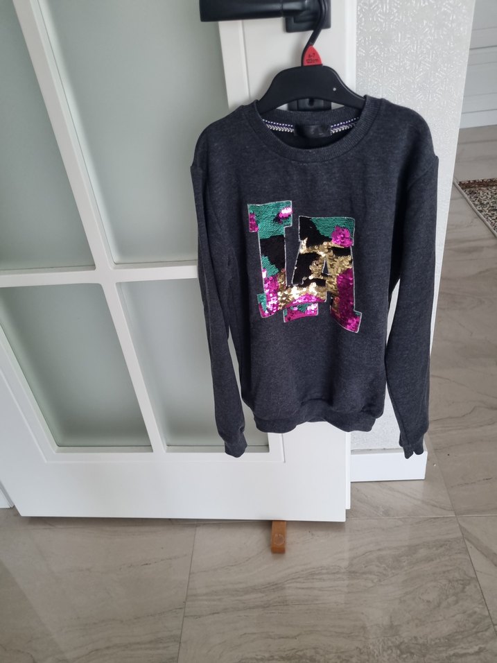 Çocuk Gri renkte, uzun kollu ve yuvarlak yaka, bol kesim bir sweatshirt. Örme sentetik kumaştan üretilmiş olup, ön kısmında baskılı desen bulunur. Sokak tarzı için uygundur.