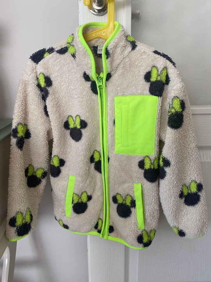 Gri renkli, yumuşak ve sıcak kumaştan yapılmış, baskılı ve kürk detaylı çocuk sweatshirt. Neon yeşili fermuar ve cepleriyle trend görünüme sahip.