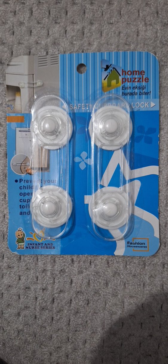 Çocukların dolap ve çekmeceleri açmasını önlemek için tasarlanmış beyaz renkli 4'lü güvenlik kilidi seti. Esnek bağlantı ve sağlam kilit mekanizması içerir. ️