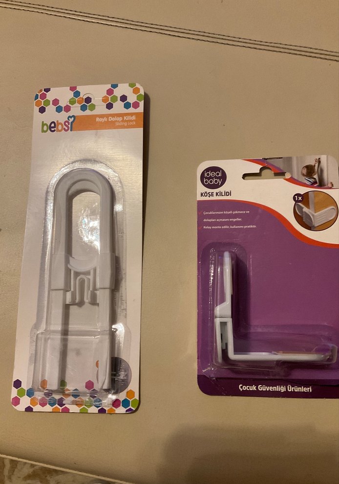 Evde çocuk güvenliğini artırmak için tasarlanmış beyaz köşe kilitleri. Keskin köşeleri korur, kolay takılır. ️
