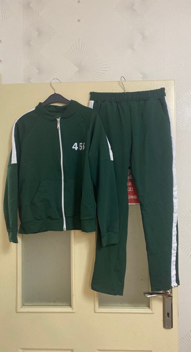 Çocuk için rahat kesim, uzun kollu, fermuarlı haki eşofman takımı. Beyaz yan şerit detaylı, yumuşak ve sıcak kumaştan üretilmiştir. 456 ve iNG baskıları bulunur. Eşofman boyu 85 cm 10 yaşa olur