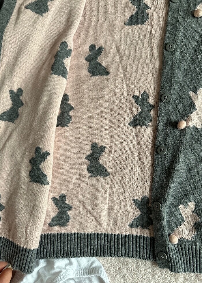 Ürünün ustundeki tavsanlarda pembe ponponlar vardir