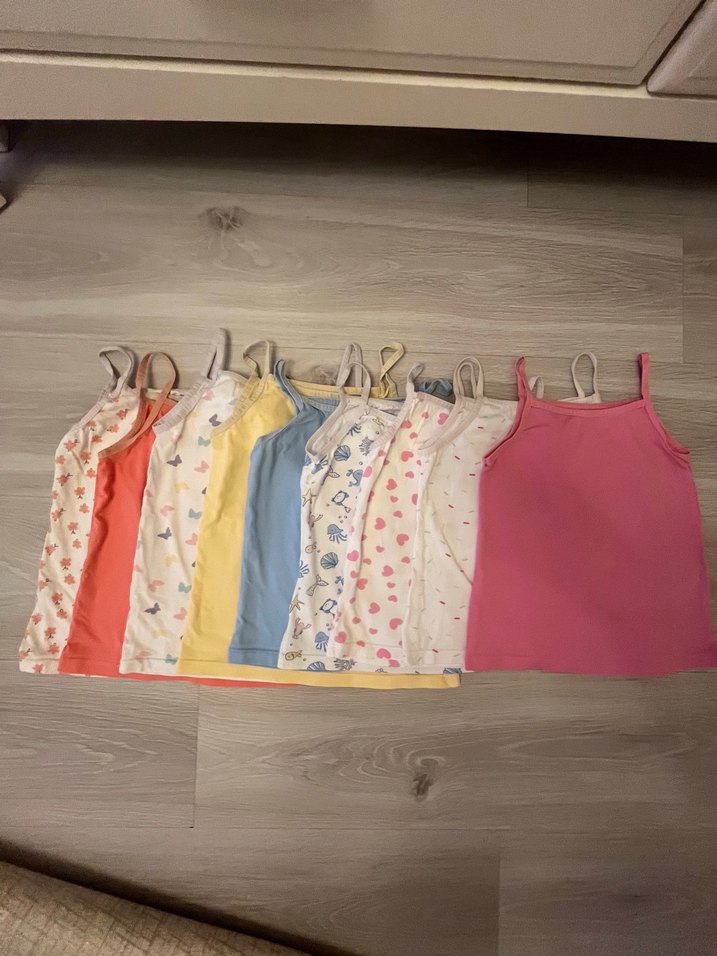 Renkli ve desensiz ip askılı çocuk atletleri, hafif ve yumuşak kumaştan üretilmiştir.