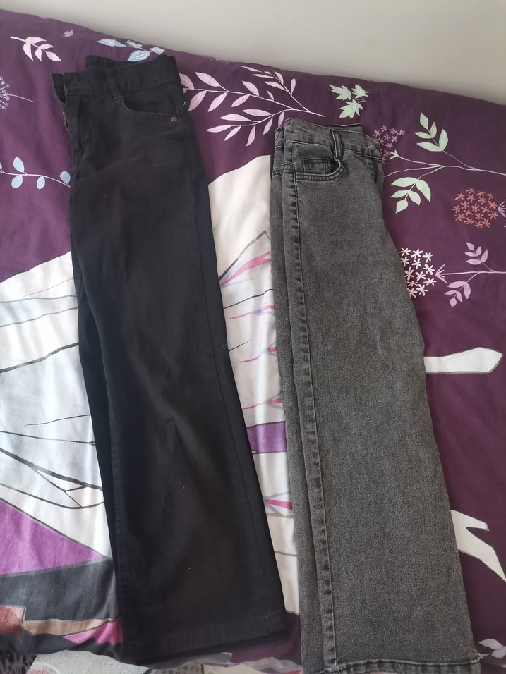 Gri renkte, bol kesim ve midi boy kot pantolon. Bel kemeri detaylı, sentetik kumaştan, günlük rahat kullanıma uygun.