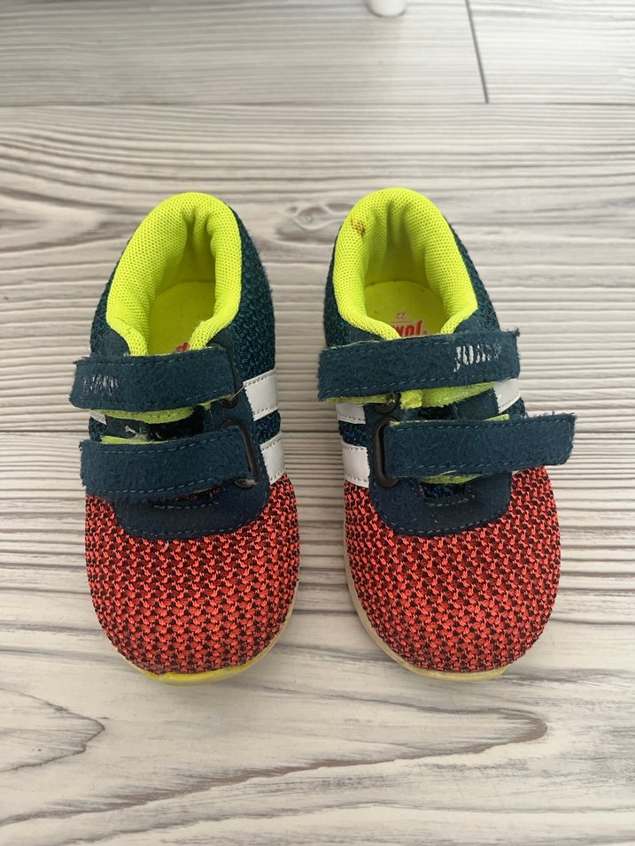 Çocuklar çok renkli ve kaymaz tabanlı spor ayakkabı. Cırt cırt bantlarla kolay kullanım sağlar. Jump markadır. 22 numara.