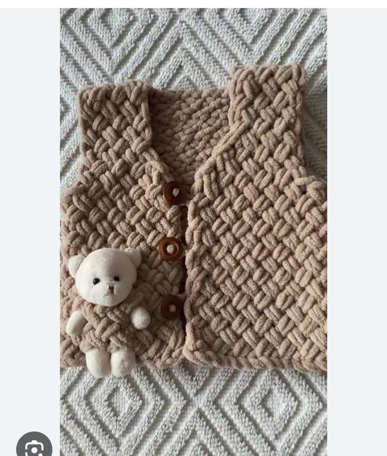 Kahverengi örgü, kolsuz, bisiklet yaka kız çocuk yeleği. Dokulu desenli, ahşap düğmeli ve küçük ayıcık aksesuarlıdır. Bohem tarzında, rahat kesim.SİPARİŞ ÜZERİ ÇALIŞIYORUZ LÜTFEN HANGİ RENK VE HANGİ MODELİ İSTEDİĞİNİZİ BELİRTİN .
