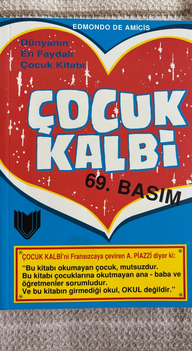 "Çocuk Kalbi" adlı Türkçe kitap, çocukların okumasının önemini vurgular, anne-baba ve öğretmenlerin sorumluluğunda olduğunu belirtir. Okullar için gereklidir.