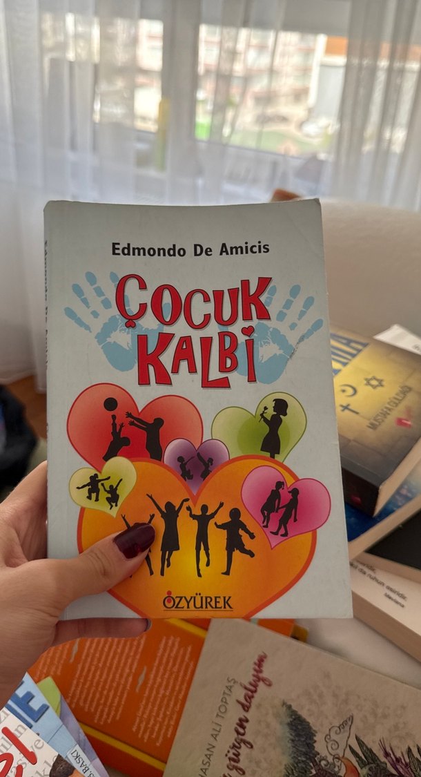 Edmondo De Amicis'in "Çocuk Kalbi" adlı çocuk kitabı, renkli kalp ve siluet illüstrasyonlarıyla kapakta. Özyürek yayınevi tarafından basılmıştır.