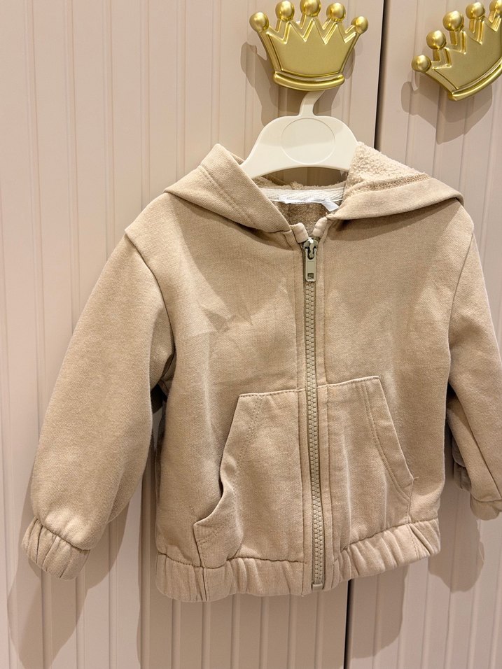 Çocuk Kapüşonlu Bej Fermuarlı Ceket