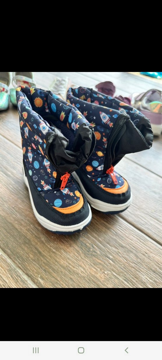Çocuklar için uzay desenli kar botu. çok kullanılmadı. temiz durumda. çok sıcak tutuyor