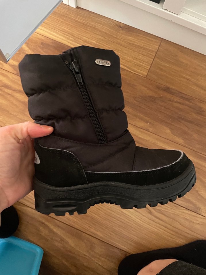 Çivili çocuk kar botu, siyah, su geçirmez. Kar yapdığında çivileri açılabilen istendiğinde kapatılabilen taban