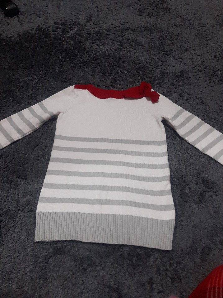 Gri çizgili, uzun kollu, triko kumaştan, tekne yakalı ve fitted kesim