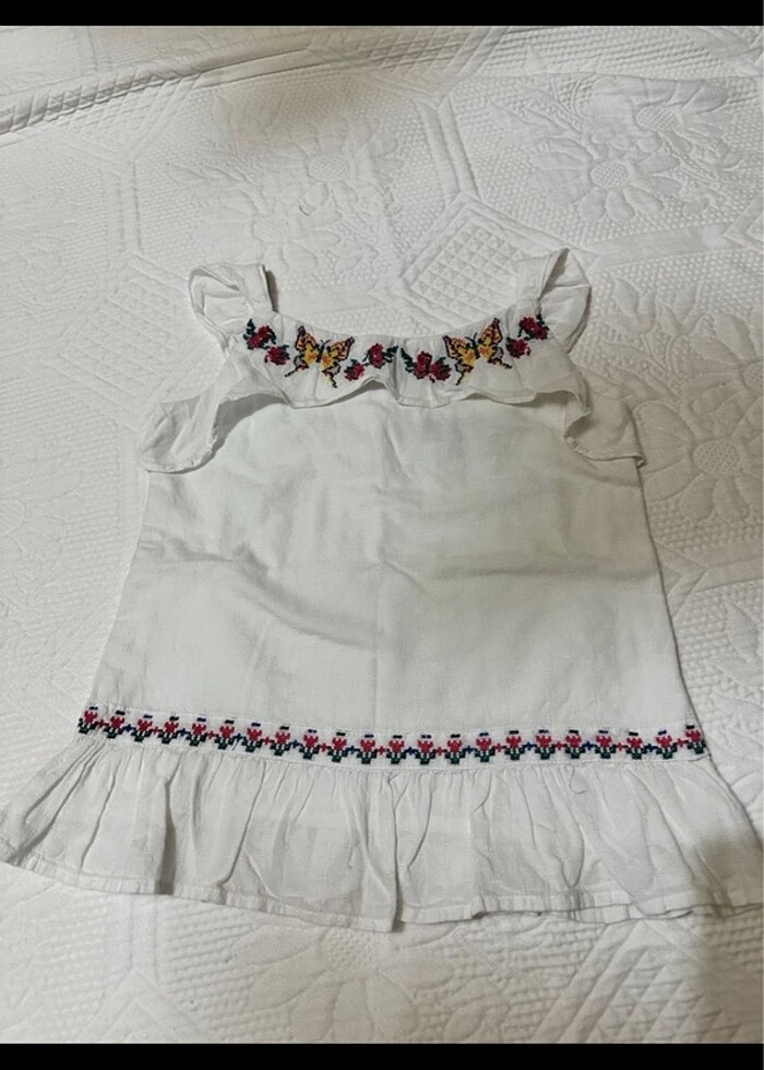 Yakası otantik kanaviçe işlemeli sıfır kolsuz bluz