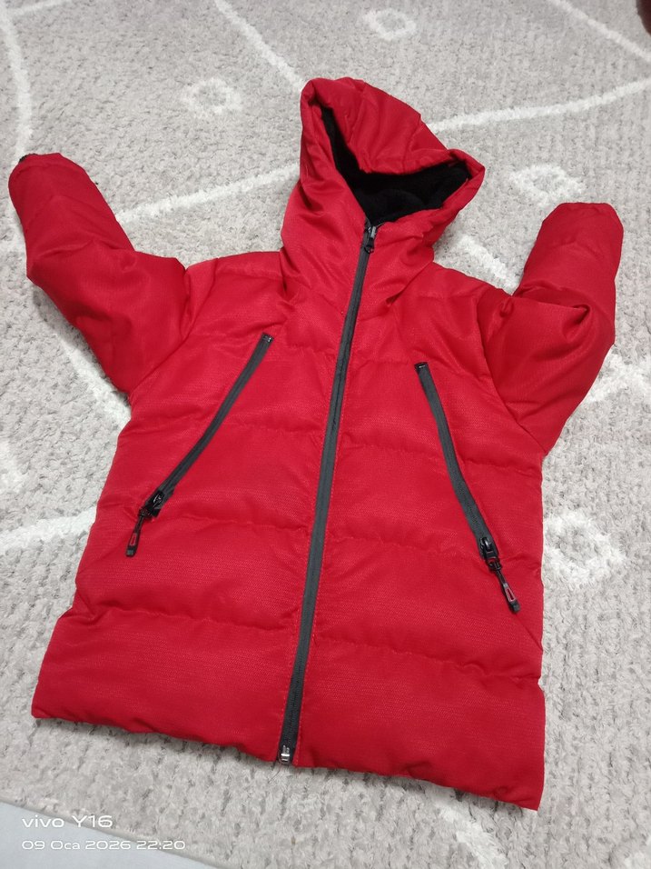 çocuk Kırmızı Fermuarlı fulla marka içi kürklü Kışlık Mont