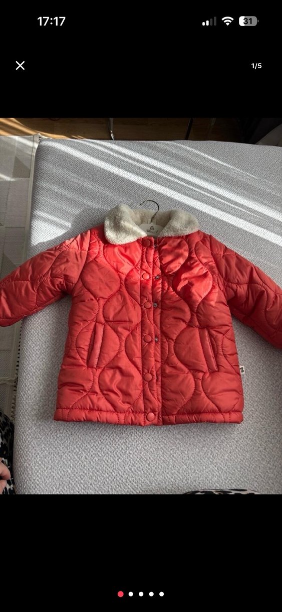 Kiremit rengi gibi kürklü yakalı, yumuşak ve sıcak dokulu, desen içermeyen, dar kesim ceket. Rahat sokak stili için uygundur. e bebekten hediye hiç kullanılmayan unisex mont 2/3 yaş uyumlu