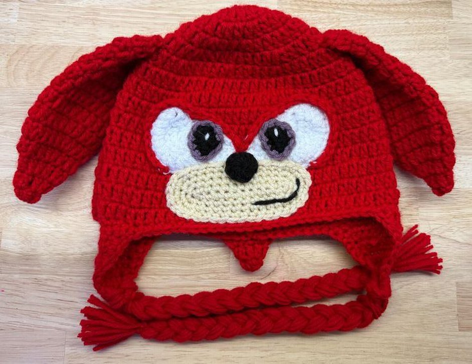 Renkli kırmızı örgü çocuk beresi, nakışlı eğlenceli yüz detaylarına sahiptir. Güvenli kullanım için örgü bağcıkları bulunur, bohem ve retro tarzını yansıtır.