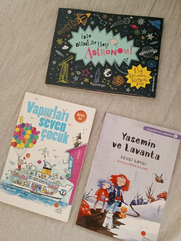Astronomi, Vapurları Seven Çocuk ve Yasemin ve Lavanta adlı sevgi ve saygı temalı üç çocuk kitabı seti. Tanesi 50 TL'ye