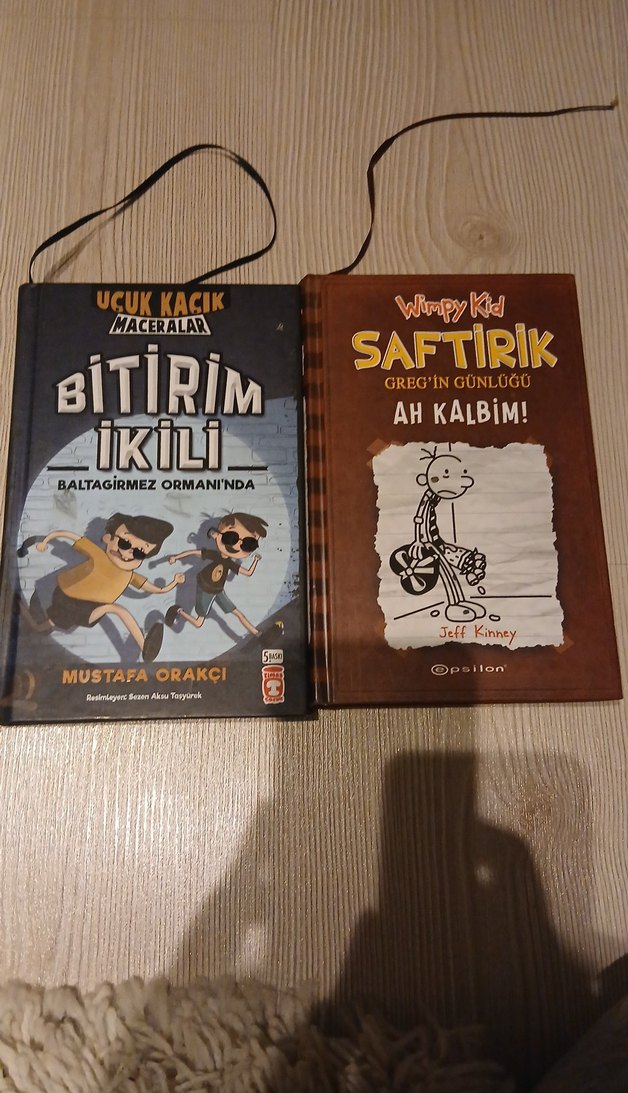 İki çocuk kitabı, biri Baltagırmez Ormanı'nda geçen "Bitirim İkili", diğeri Greg'in günlüğünden "Saftirik" serisine ait.