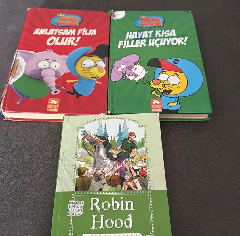 Robin Hood hikayesi ve 'Anlatsam Film Olur!' ile 'Hayat Kısa Filler Uçuyor!' adlı çizgi film temalı üç çocuk kitabı