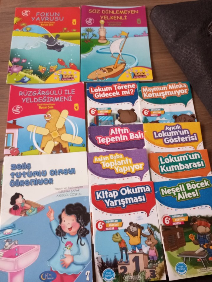 Farklı hikayeler içeren 12 çocuk kitabı seti. "Fokun Yavrusu," "Söz Dinlemeyen Yelkenli," "Kitap Okuma Yarışması" gibi çeşitli kitaplar bulunur.