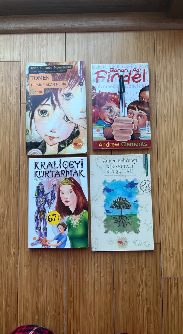 "Tersine Akan Nehir", Bunun Adı Findel, Bir şeftali bin şeftali, "Kraliçeyi Kurtarmak" gibi kitapların yer aldığı 4 kitaplık çocuk seti. Her kitap farklı hikayeler ve çizimler içerir.