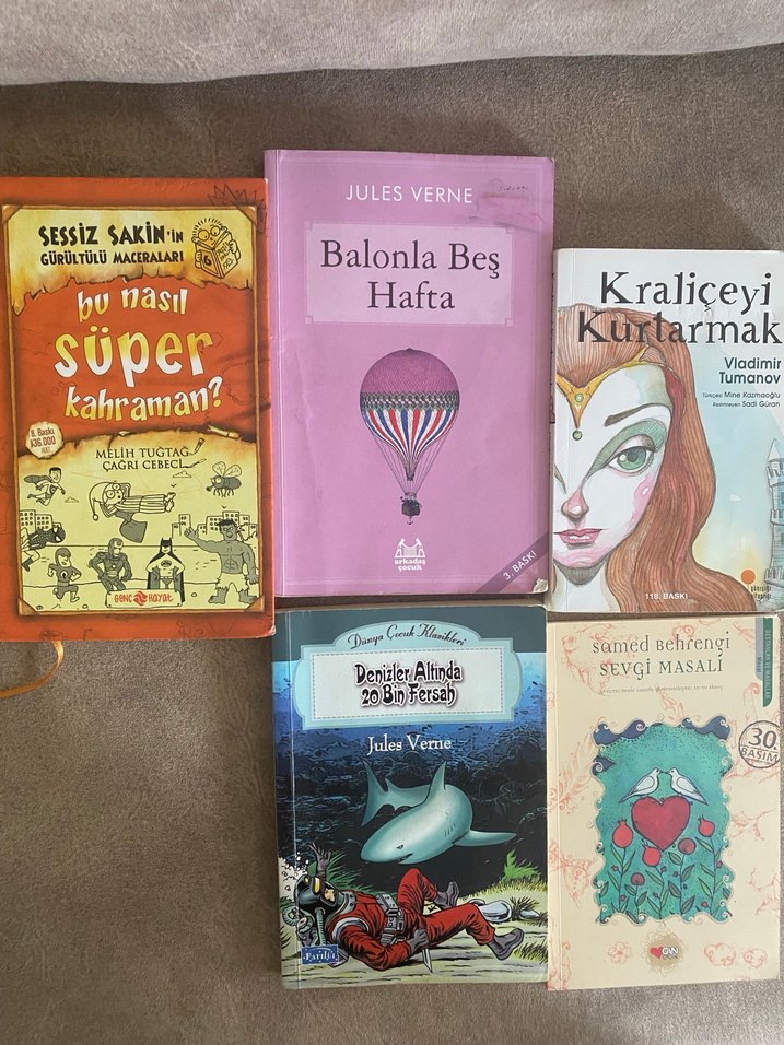 Jules Verne'in 'Balonla Beş Hafta'sı ve 'Kraliçeyi Kurtarma' dahil 5 çocuk kitabından oluşan set.
