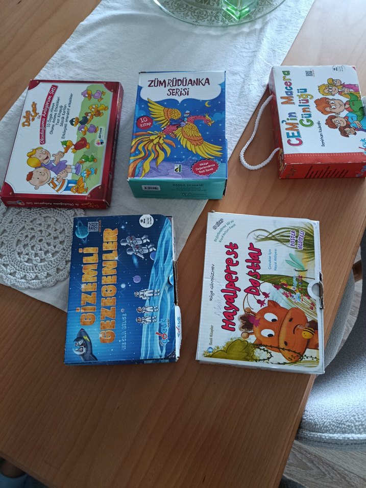 ceşitli çocuk kitaplarından oluşan setler icerilerinden sıfır olanda var birkez okunmuş olanda hiçbir yıpranma yoktur adet fiyatı:200tl toplu alımda yardımcı olurum
