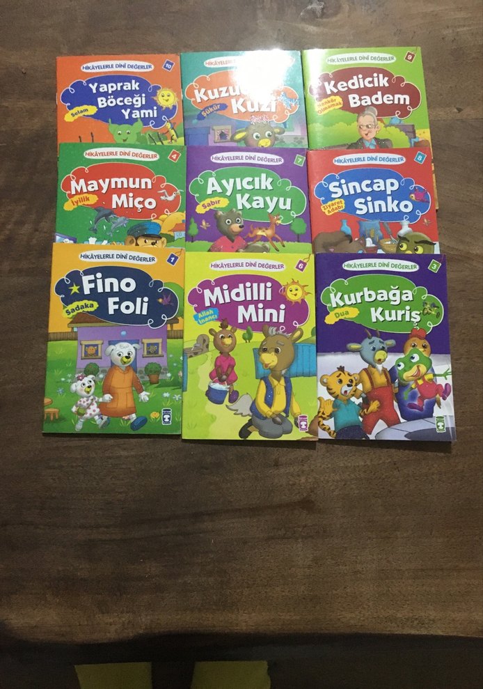 Mini, Yaprak, Badem gibi hayvan karakterlerinin yer aldığı çocuk kitapları seti. Her kitap farklı hayvan hikayelerini renkli kapaklarla sunar.