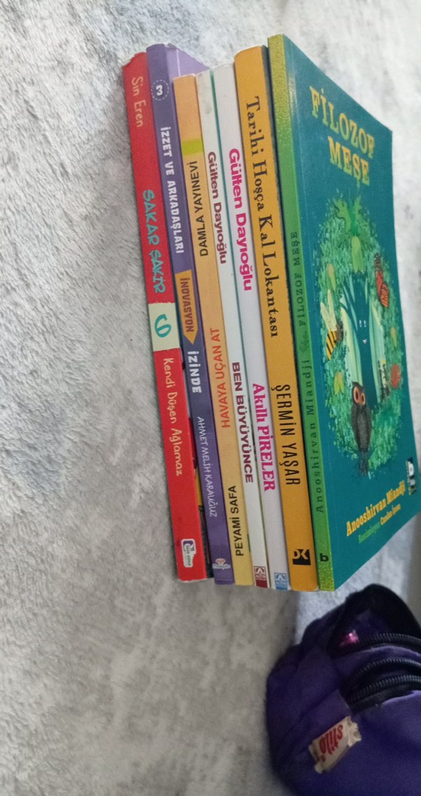 Şermin Yaşar ve Gülten Dayıoğlu gibi yazarların yer aldığı, renkli kapaklı 7 çocuk kitabı seti.
