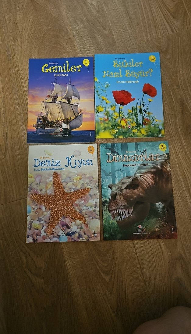 Bitkiler, gemiler, deniz kayısı ve dinozorlar hakkında renkli ve eğitici çocuk kitapları seti.