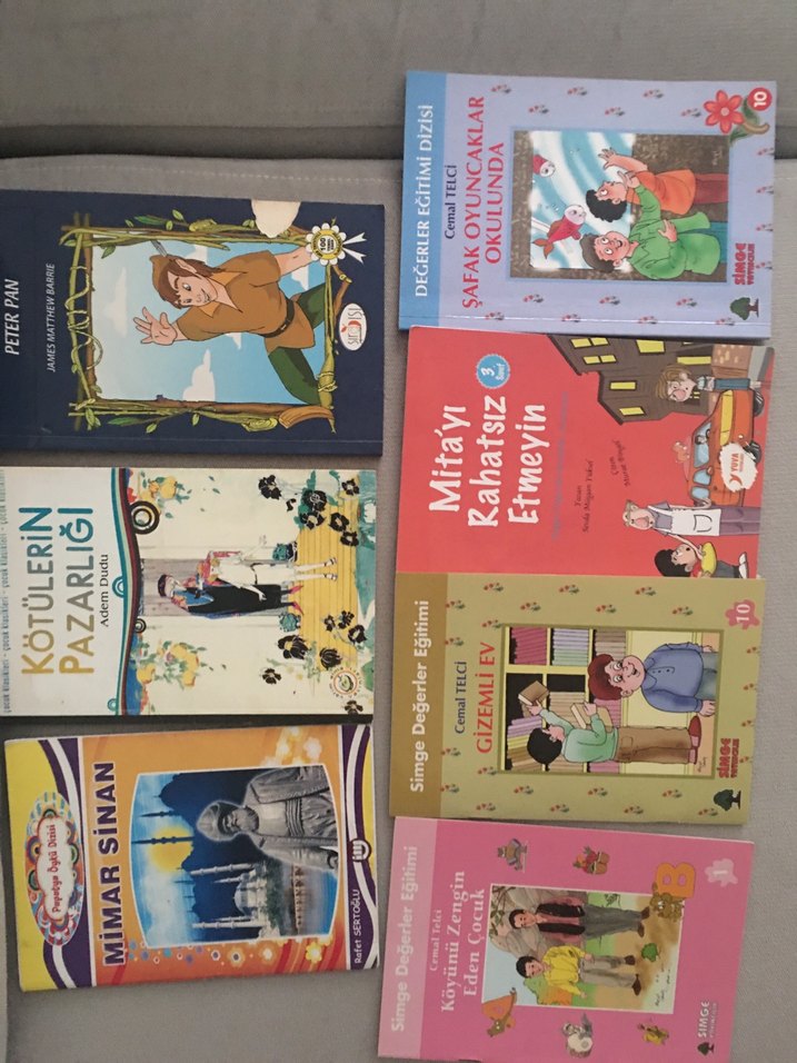 6 adet-3 adet son sayfalarda soru cevap Siyah kapaklı hediye Peter Pan 2 no paylaştım eski sararmış sayfalar Hediye gönderilecek Diğerleri temiz 2 no foto Eğitici ve eğlenceli hikayeler içeren çocuk kitapları seti, içinde tarihi figürler ve ahlaki dersler barındırıyor.