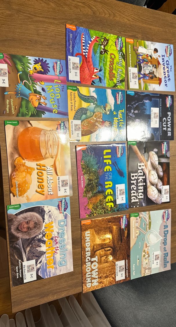 Arılar, hava durumu, hayvanlar, ekmek yapımı ve doğa gibi konuları içeren çocuk kitapları seti. Renkli çizimler ve eğlenceli hikayeler içerir.