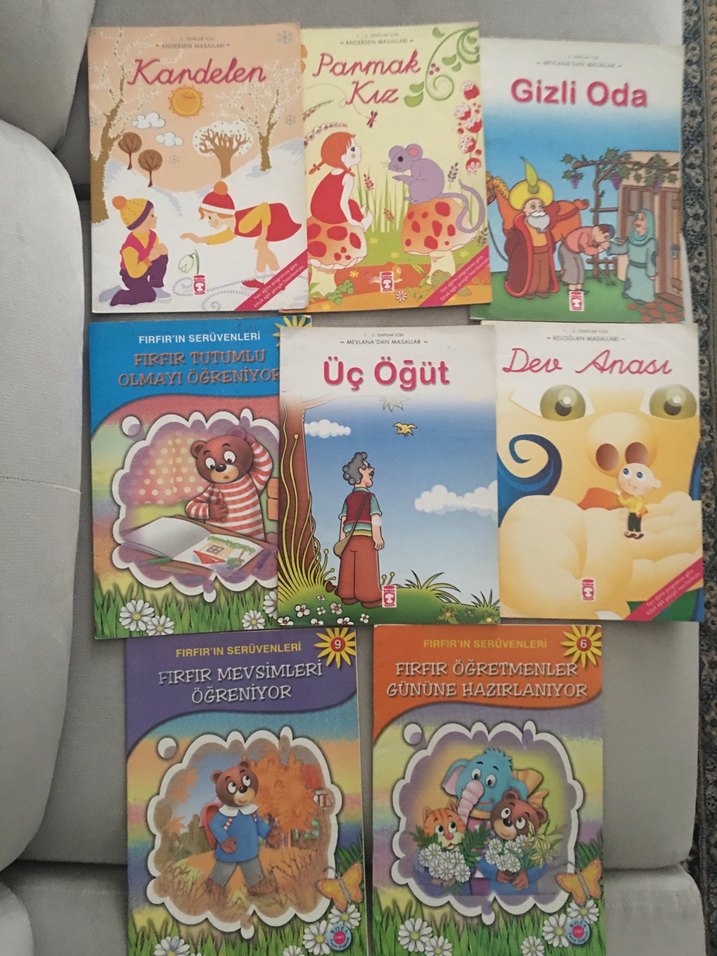 Son fotoğraflar paylaştım bazıları son sayfalar soru cevap eğitici kitaplar kaliteli parlak renkli desenli sayfalar Satışta başka kitaplar var bunların ebatları daha büyük okul defteri gibi 2 no yeşil renk yanda kıyaslamak için Kandelen, Gizli Oda, Panmak Kız ve Firfir'in macera ve öğretici hikayelerinden oluşan çocuk kitapları seti.