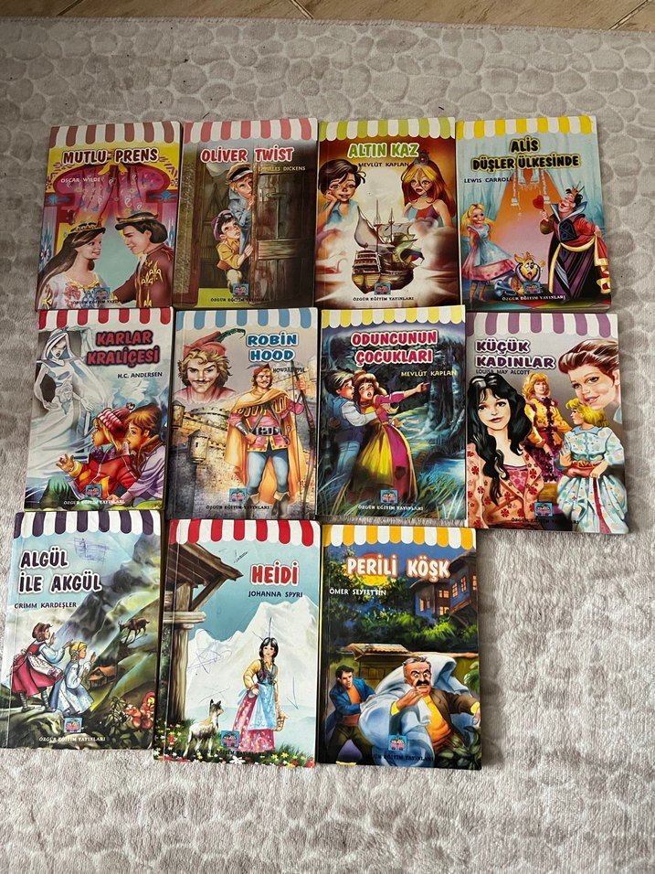 Oliver Twist, Robin Hood, Heidi gibi klasik ve masal temalı çocuk kitaplarından oluşan bir set.