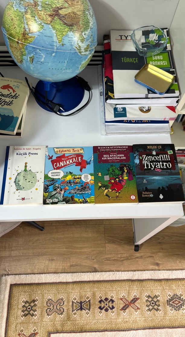 Türkçe çocuk kitapları seti, Küçük Prens, Çanakkale hikayesi ve Zencefilli Tiyatro gibi çeşitli kitaplar içerir.