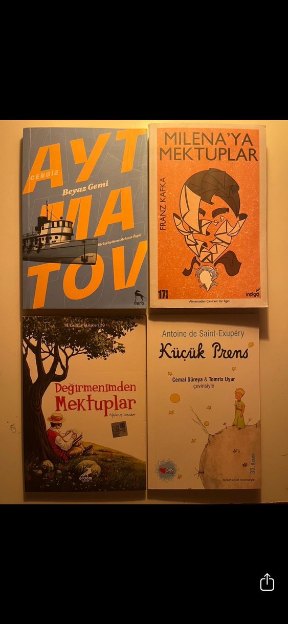 Tanesi 60 tl, hepsi 200 tl Apollinaire'nin "Değirmenimden Mektuplar", Kafka'nın "Milena'ya Mektuplar", Saint-Exupery'nin "Küçük Prens" gibi klasik çocuk kitapları seti.