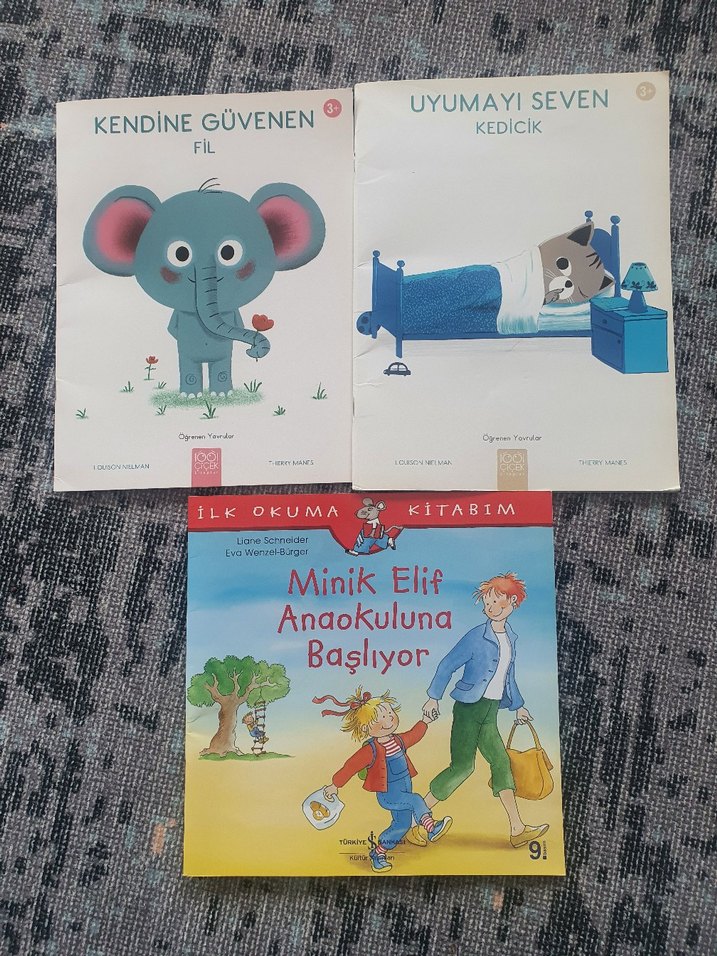 Minik Elif Anaokuluna Başlıyor, Kendine Güvenen Fil ve Uyumayı Seven Kedicik kitaplarını içeren çocuk kitapları seti. Renkli çizimlerle basit hikayeler anlatır.