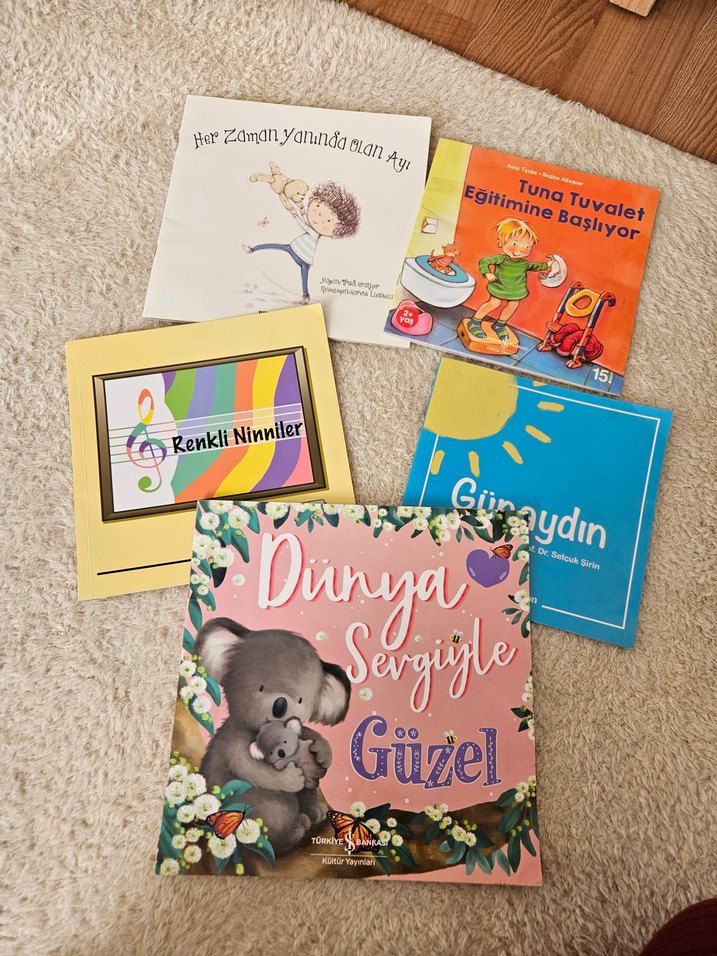 Renkli çizimler ve temalar içeren "Tuna Tuvalet Eğitimine Başlıyor", "Dünya Sevgiyle Güzel" ve müzikli ninniler dahil çocuk kitabı seti.