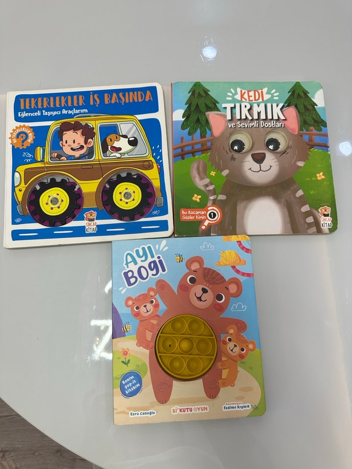 Bu set, eğlenceli taşıyıcı araçlar, Kedi Tırmık ve dostları ile Ayı Boğı temalı üç çocuk kitabı içerir.