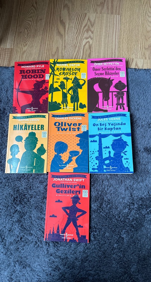 Robin Hood, Robinson Crusoe, Ömer Seyfettin'den seçme hikayeler ve daha fazlasını içeren 7 kitaplık çocuk klasiği seti. Her kitap genç okuyucular için sadeleştirilmiş hikayeler içerir.