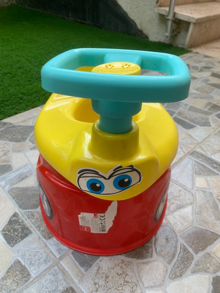 Sarı ve kırmızı gövdesi, mavi tutma yeri olan renkli su oyuncağıdır. Oynarken eğlenceli göz desenleri bulunur.